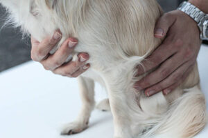 Excessive licking or grooming a specific area